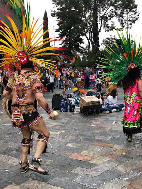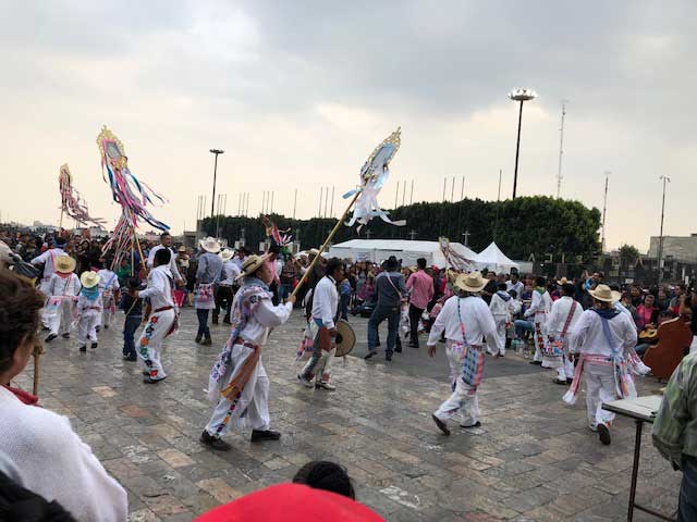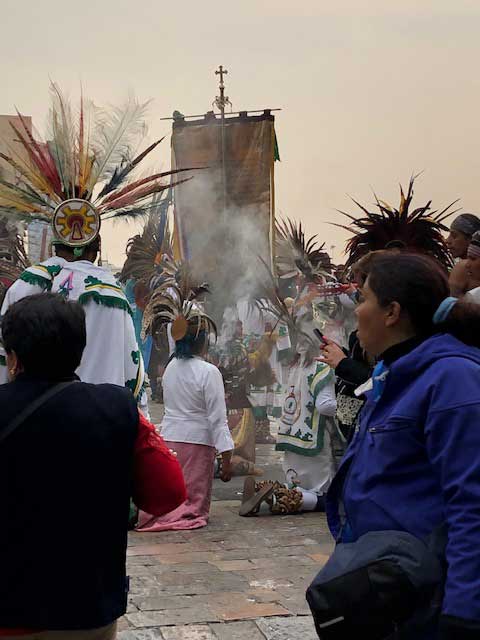 Hasta ese día no tenía idea de que la esperanza y la alegría se pueden tocar, podían sentirse tan fuertes hasta ser sólidas. Los aromas embriagan y crean una atmósfera única y surrealista, como es México. No me alcanza los ojos para ver tanto espectáculo: de un lado hay gente ataviada con lujosos trajes prehispánicos bailando al son de las caracolas; más allá hay bailes de banda, trapecistas, turistas y curiosos y un poquito a la izquierda hay gente arrodillada antes inmensos estandartes con la imagen de la Virgen… Las palabras son insuficientes para expresar tanta luz y tanto color.