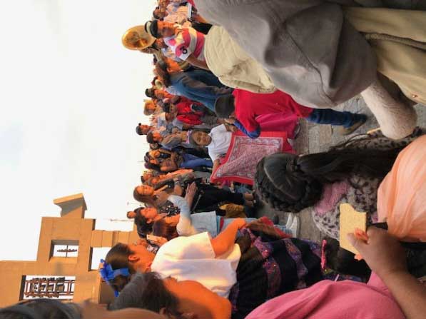 La gente come en las esquinas, en donde puede, y descansan sobre sus cajas o pequeño equipaje. Otros hacen fila ante los muchos vecinos que sacan sus enormes ollas de tamales para compartir con los peregrinos. Nadie parece cansado. Quizás todos están embriagados de esta inmensa celebración, quizás tantos corazones hinchados no permiten que el cansancio los fuerce a detener los cantos, ni los bailes, ni la fe. Esto es mucho más que una festividad religiosa, es la festividad de un pueblo ancestral que se hunde en los sahumerios de copal, siempre llenos de esperanza por cosas mejores y siempre llenos de agradecimiento por lo que ya fue.